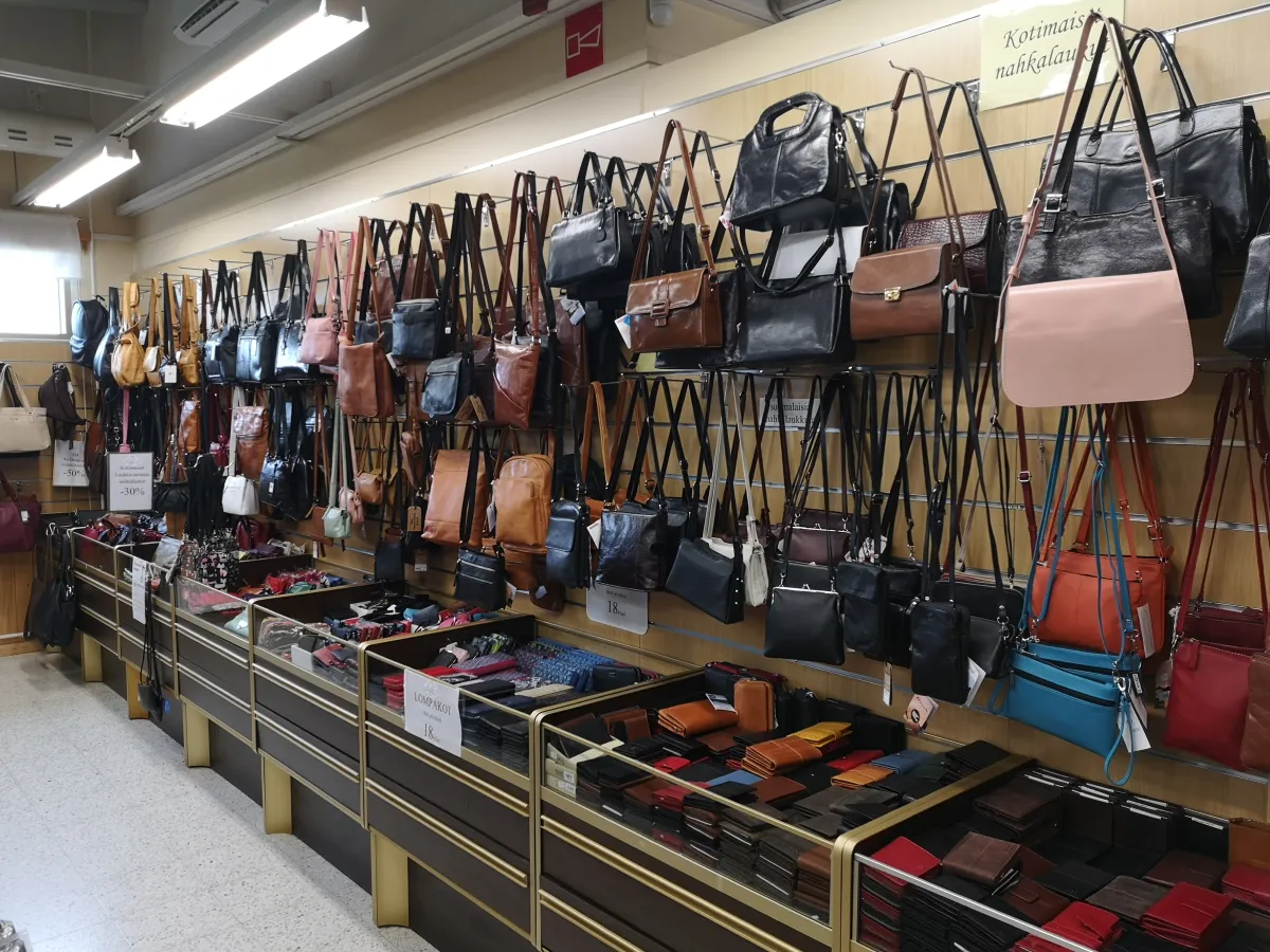 Kotimaiset ja ulkomaiset laukut. Kotimaisia nahkalaukkuja saatavilla mm. Honkolta. Laadukkaita ulkomaisia nahkalaukkuja toimittaa muun muassa Re:Designed, Sajaco, The Chesterfield Brand ja A. Eriksson. Valikoimassa myös keinonahkaisia ja kankaisia laukkuja sekä miesten laukkuja.